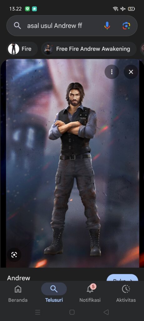 Andrew dalam Free Fire adalah karakter pria berusia 42 tahun yang berprofesi sebagai polisi dengan rasa keadilan tinggi. Dirilis sebagai karakter gratis, Andrew dikenal dengan kemampuan pasif “Armor Specialist” yang meningkatkan ketahanan vest (rompi anti-peluru), membuatnya ideal untuk flanker atau rusher. Berikut adalah poin penting mengenai asal-usul dan latar belakang Andrew di Free Fire:Profil Karakter: Andrew digambarkan sebagai petugas polisi yang berdedikasi. Ia lahir pada tanggal 25 Desember dan memiliki penampilan khas dengan singlet (kaus dalam) yang dianggapnya membawa keberuntungan.Kemampuan (Skill): Kemampuan khususnya, Armor Specialist, mengurangi kerapuhan rompi. Hal ini membuat rompi yang digunakan Andrew tidak mudah hancur, sehingga ia bisa menahan damage musuh lebih lama.Kisah & Awakening: Andrew juga memiliki cerita latar belakang yang melibatkan hubungan dengan karakter lain, termasuk keterlibatannya dalam kisah Awakening yang berkaitan dengan Kelly.